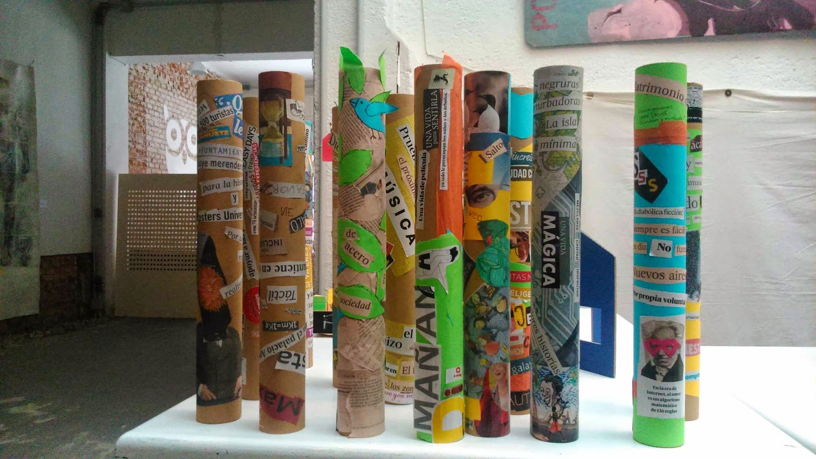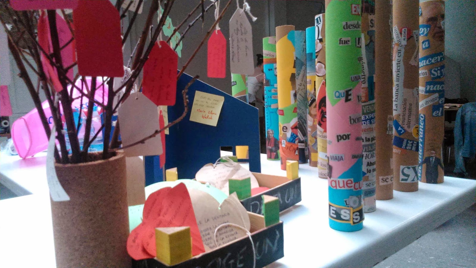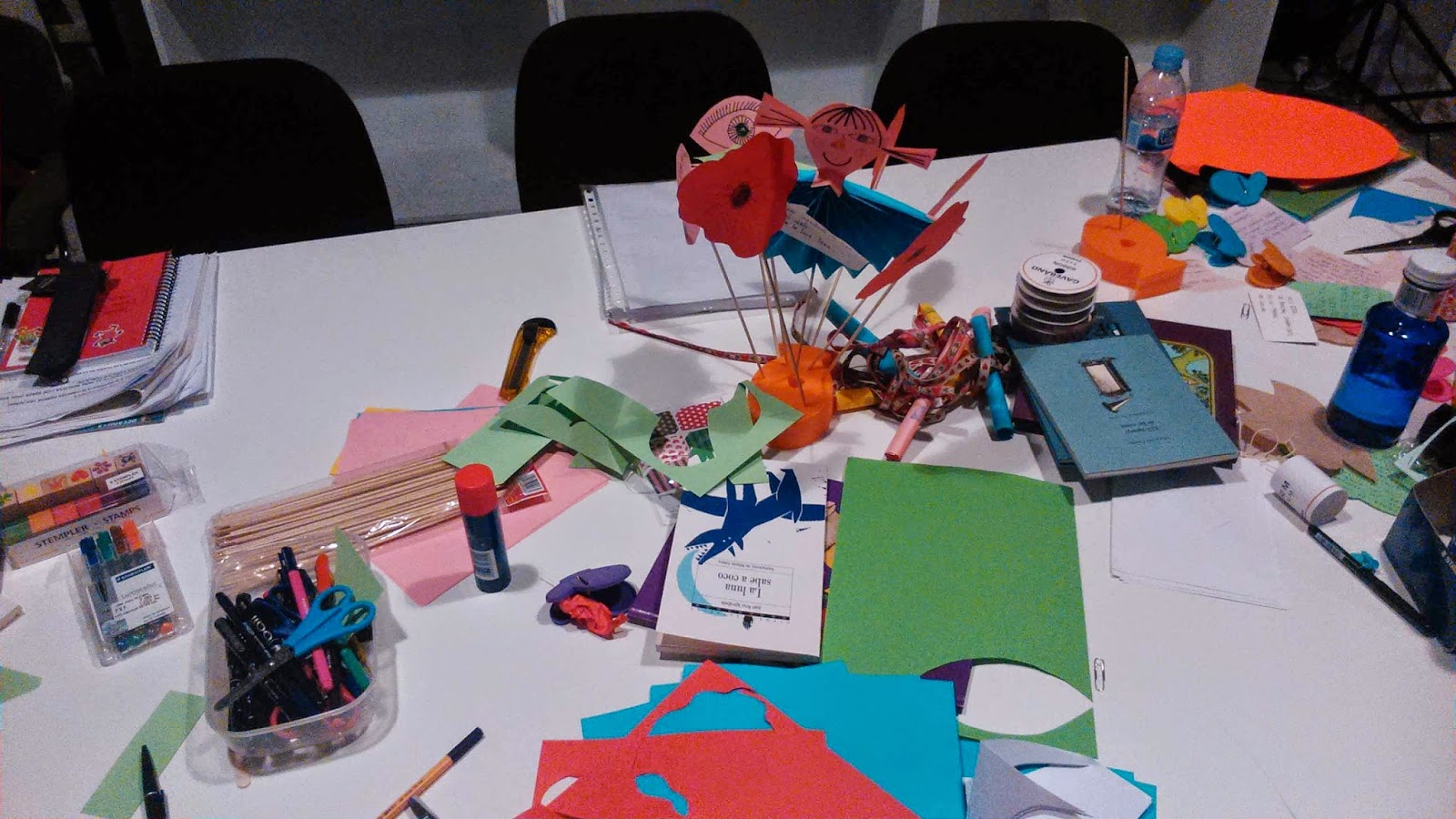 Y el sábado por la tarde, a pesar del cansancio (más de 10 horas sin desconectar), cuando llegó la hora de jugar con la poesía plástica, con la elaboración del material para la intervenció: revisión, re-interpretación y juego con los poemas, a la hora de terminar, ¡nadie quería irse!