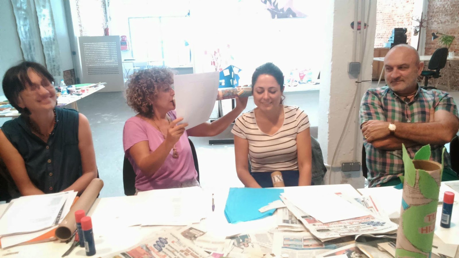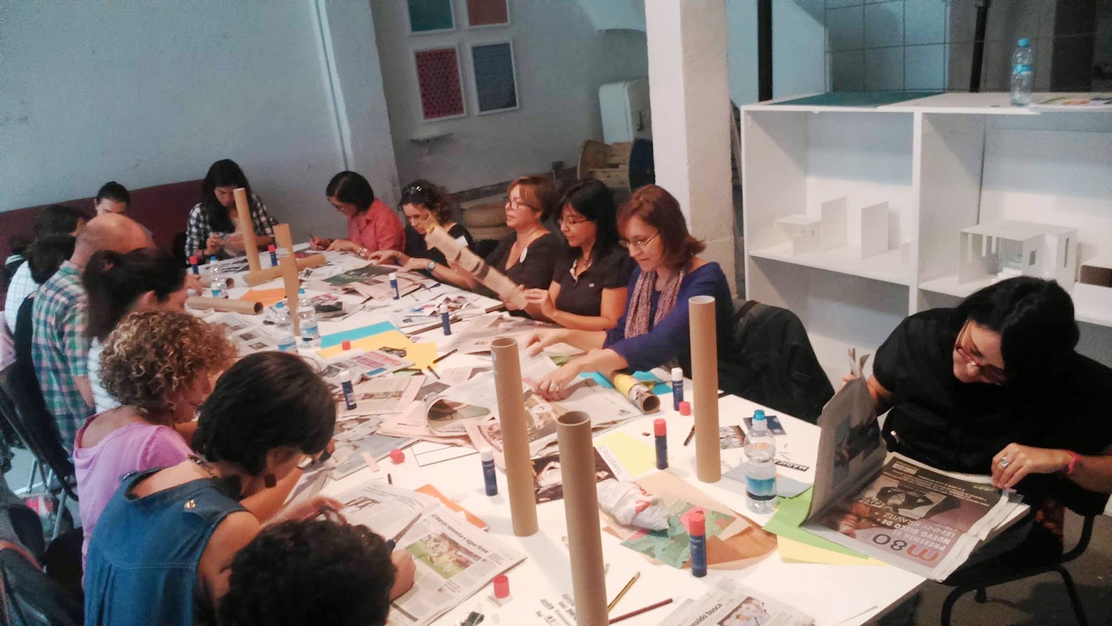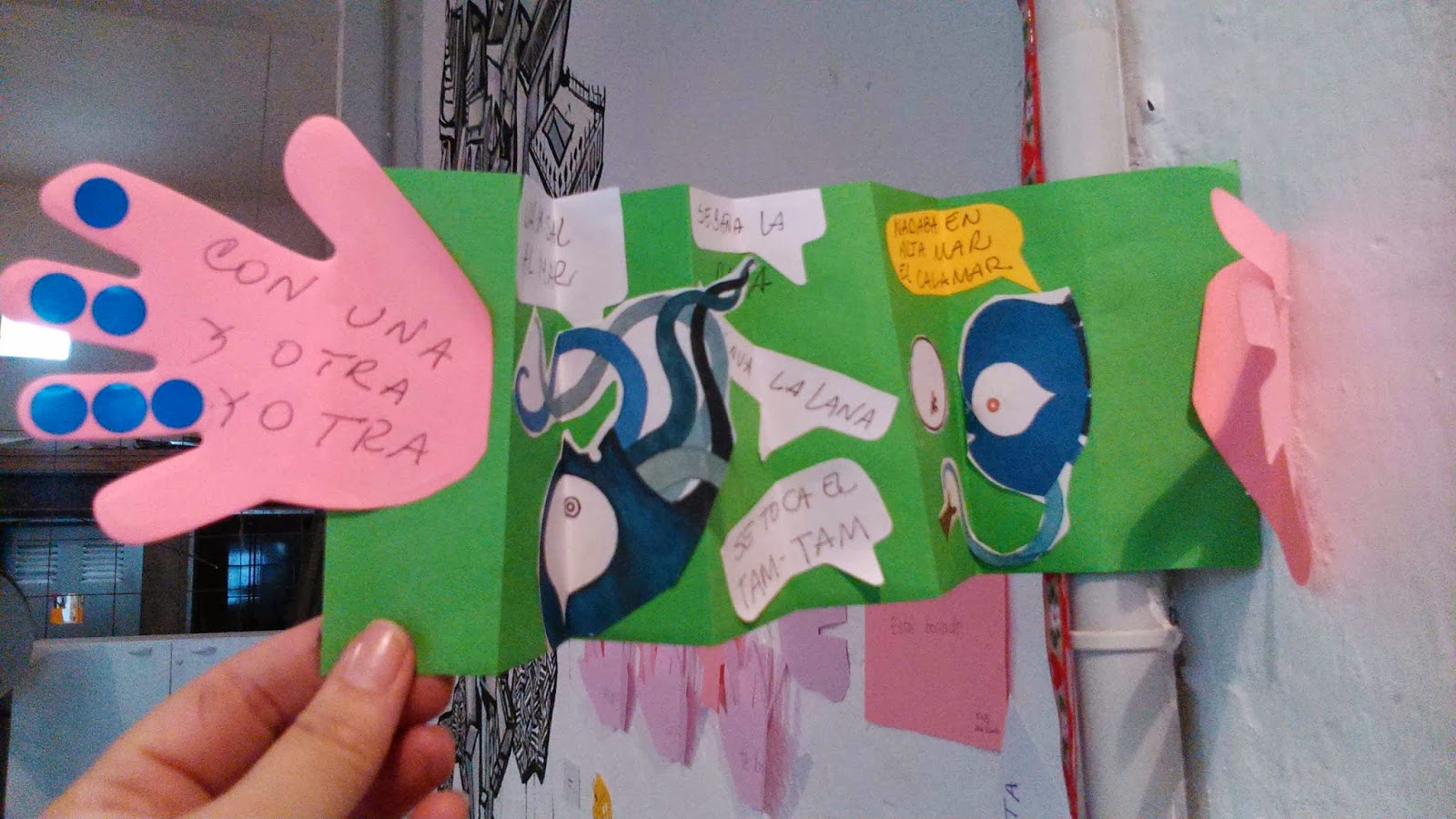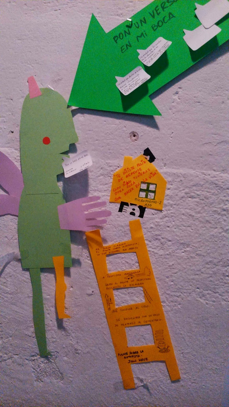 Y el sábado por la tarde, a pesar del cansancio (más de 10 horas sin desconectar), cuando llegó la hora de jugar con la poesía plástica, con la elaboración del material para la intervenció: revisión, re-interpretación y juego con los poemas, a la hora de terminar, ¡nadie quería irse!