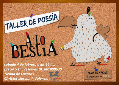 El próximo sábado en la Tienda de Cuentos Contarte de Valencia (reservas: 661090630). Será a las 12.00, edad aconsejada más de 6 años, presentaremos el libro con un recital y luego haremos nuestros propios poemas y animaladas varias. Os espero.